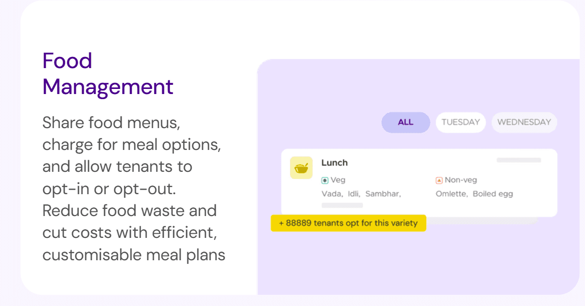 The best part about Crib is that it doesn’t stop with food management. It offers end-to-end hostel and PG management, handling everything from check-in to check-out. It covers essential aspects like maintenance management, attendance tracking, and financial operations, ensuring smooth and efficient day-to-day management.