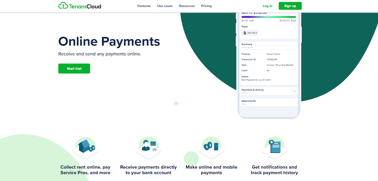 Landlords can set up automatic rent payments and also accept one-time payments.